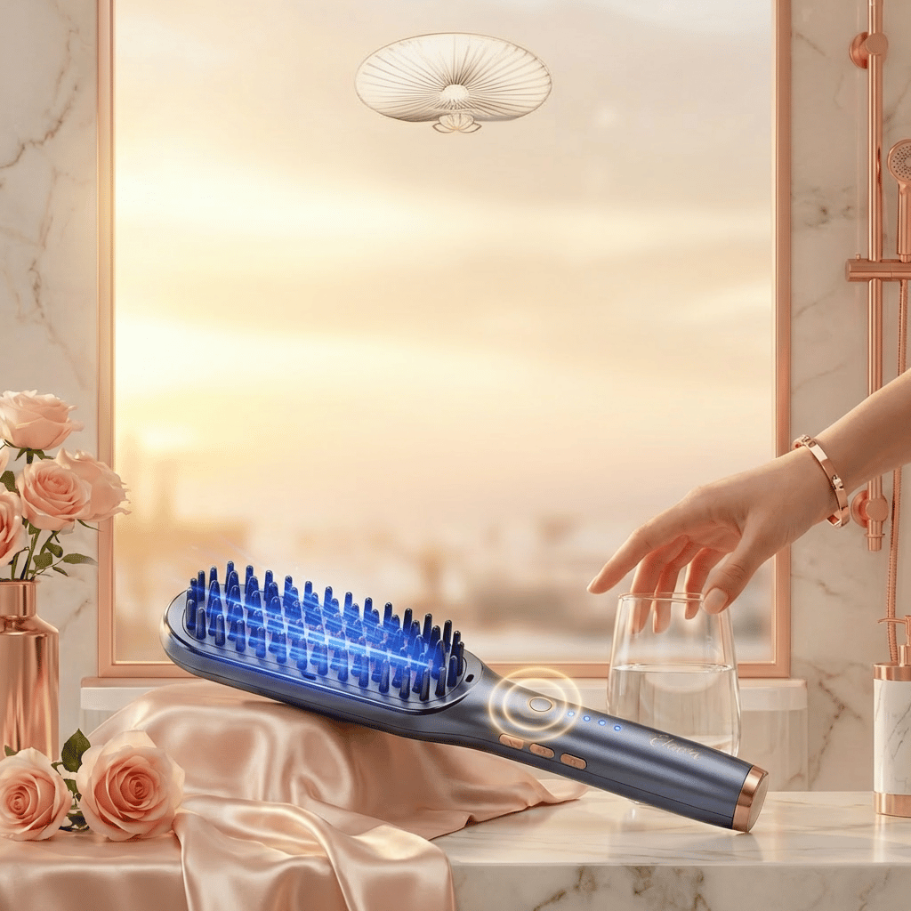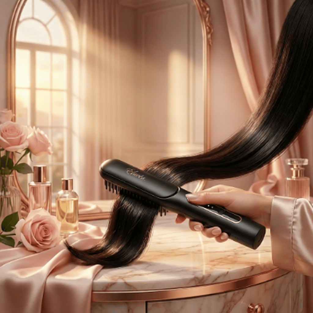 The straightener is AWESOME. It's really high quality, and does what it says it will do. It heats up within 30 seconds, and smooths and straightens when you run it through your hair. The lock button on the side is a thoughtful feature, and it works well. It's not too heavy, and it's really small and truly portable. It also comes with a beautiful leather case to keep it nice in your bag. The box it comes in is really beautiful, too, which would make it a great gift!I have a dryer/brush that I use at home, but it's a plug in and is really cumbersome to travel with because of all of the attachments (I love them, but for travel, it's not ideal). While this won't replace my daily tool, this little guy solves the problem for travel! It can straighten, and you can also use it to curl. This is going to live in my purse because my hair tends to get really frizzy and tangled quickly when I go out, and I've never been able to keep that sleek perfect look from when I just finish my hair. With it I can pull it out, turn it on and use it all within 2 minutes before heading in to a restaurant or an event, etc.Overall, this works great for me, but I do think it'll depend on your hair type as to how quickly/well it will work! My son has really thick, course hair, so we tried it on him and it did work well, but took a couple of extra passes. For me, it's not a daily replacement, but I could totally see it being a daily tool for someone! I think this straightening brush makes a great gift, and is well thought out.